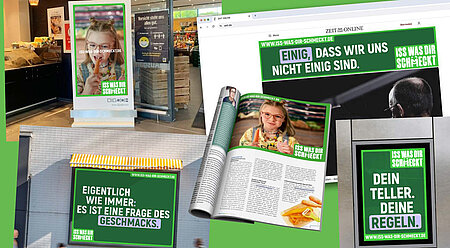 Gleich im Januar ist die Kampagne auf mehreren Kanälen sichtbar: Neben der Ausstrahlung des neuen TV-Spots mit der Inszenierung von Vielfalt und Genussmomenten wird „Iss was dir schmeckt“ auch im Kino im Vorfeld der Komödie „Extrawurst“ (Start 15.1.) mit Christoph Maria Herbst und Hape Kerkeling zu sehen sein und macht auch bei der Internationalen Grünen Woche in Berlin auf sich aufmerksam.