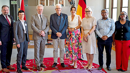 Gemeinsam für neue Exportchancen: (v.l.) Jan-Bernd Stärk, Westfleisch-Exportleiter, Alois Rainer, Bundesminister für Ernährung und Landwirtschaft und Steffen Reiter, Hauptgeschäftsführer des Verbands der Fleischwirtschaft, im Austausch während der Delegationsreise in Südafrika.