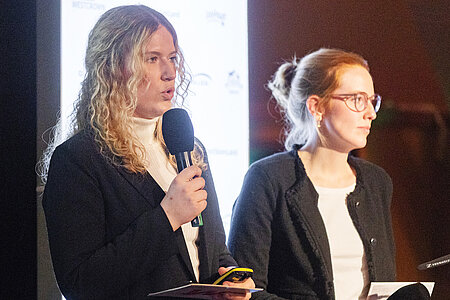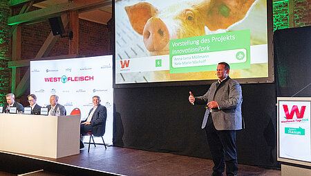 Nele Marie Wiehoff und Anna-Lena Möllmann aus dem Team Nachhaltigkeit von Westfleisch stellten das Projekt „InnovationPork” vor. Das Ziel des Verbundprojekts ist es soziale, ökonomische und ökologische Nachhaltigkeitskriterien international zu vergleichen und Reduktionmöglichkeiten durch Effizienzpotenziale in der Wertschöpfungskette aufzuzeigen.